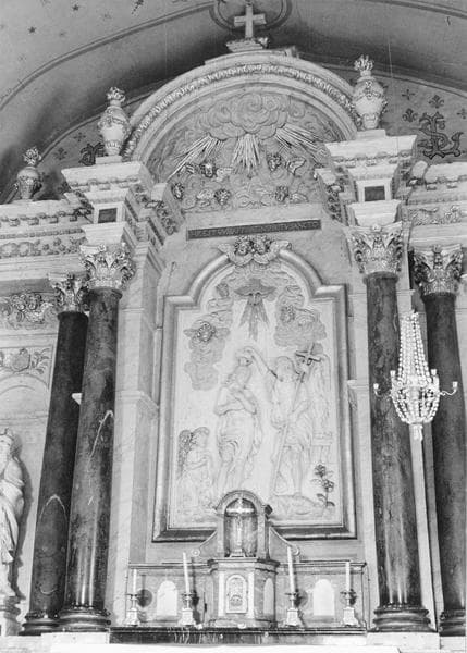 POP | Plateforme ouverte du patrimoineretable du maître-autel, relief (panneau sculpté) : Le Baptême du Christ, statues : Saint Rémy, Saint Eutrope
