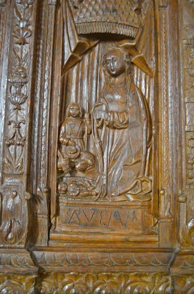 Ces portes sont amorties en forme de cintre surbaissé. La partie rectangulaire de chaque porte est divisée en quatre panneaux par un pilastre et des bandeaux. Les panneaux inférieurs sont décorés d'ornements Renaissance, tandis que les panneaux supérieurs sont occupés par une scène : la Nativité du côté sud et l'Annonciation du côté nord. Au-dessus des scènes se trouvent des baldaquins avec des angelots.
