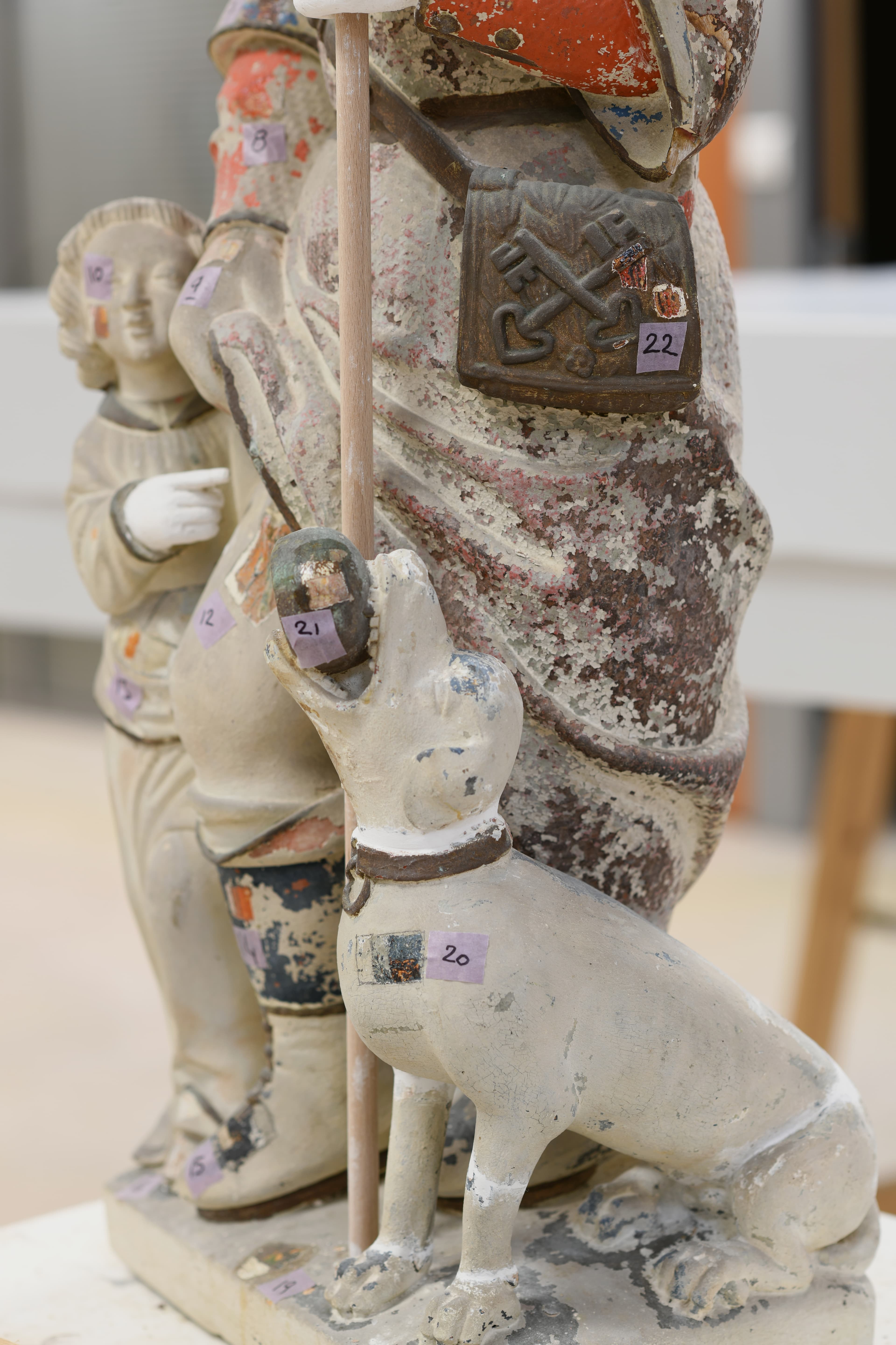 groupe sculpté : Saint Roch avec un enfant et un chien