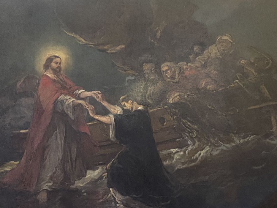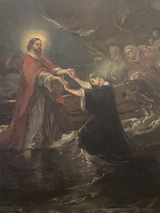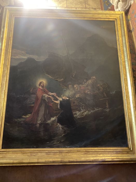 tableau : Jésus marchant sur les eaux tend la main à saint Pierre