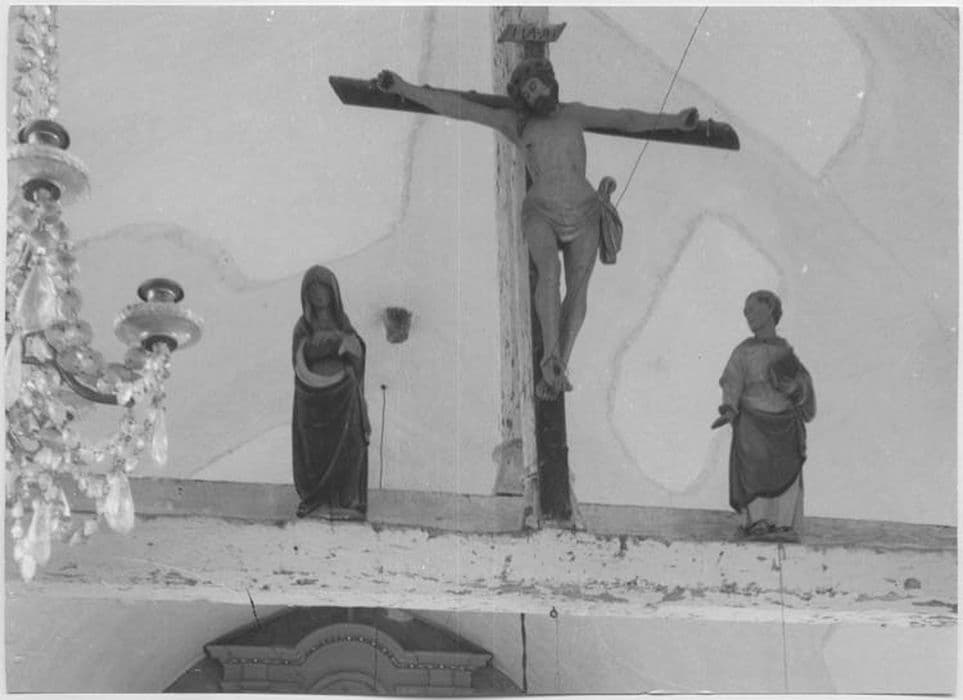 Poutre de gloire avec son groupe sculpté : le Christ, la Vierge et saint Jean.