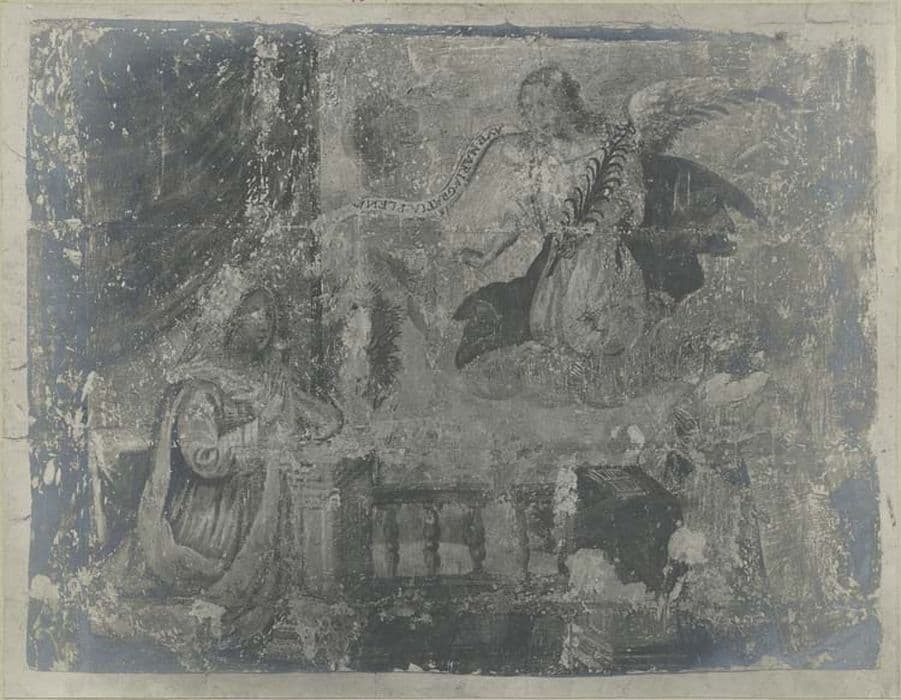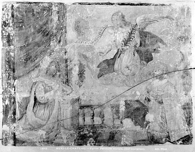 peintures monumentales : le Purgatoire avec les donateurs Guislain du Bus et son épouse, l'Annonciation avec le donateur, Jacques (?) Perrotin prêtre et son patron