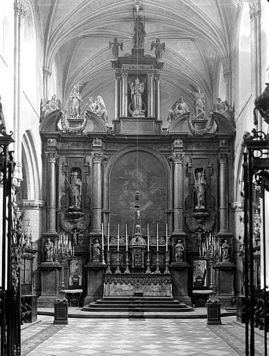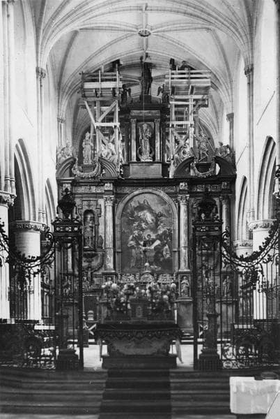 Au centre du retable une toile, l'Assomption de Gérard Seghers et dans les deux niches deux statues, Charlemagne et Saint Louis.