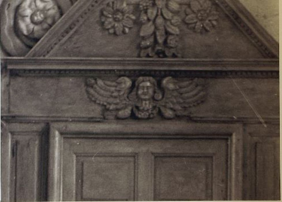 2 bas-reliefs, Têtes d'angelots, sur les portes latérales du retable du maître-autel, volées le 26-27 septembre 2000.