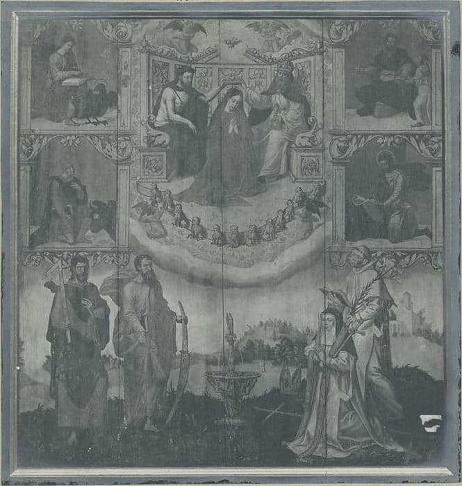 POP | Plateforme ouverte du patrimoinetableau : le Couronnement de la Vierge avec les quatre évangélistes trois saints et la donatrice