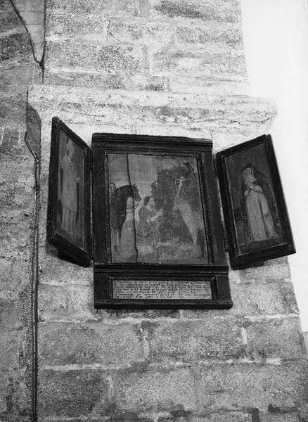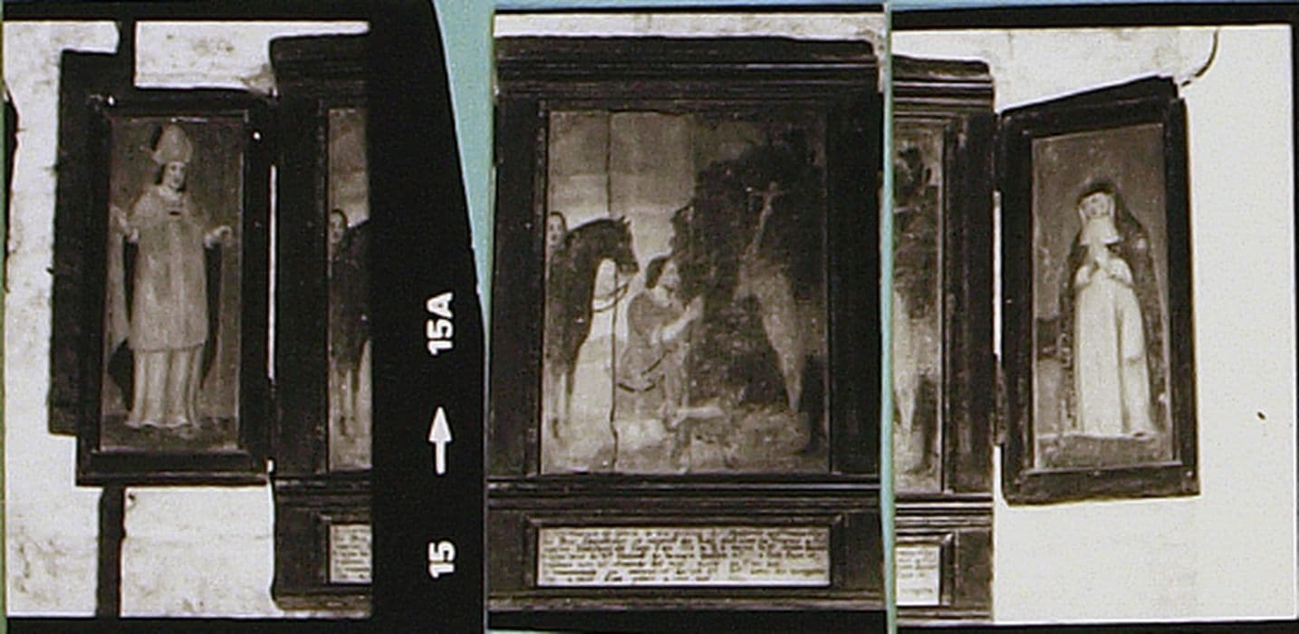 tableau (triptyque) : la Vision de saint Hubert et deux personnages (œuvre volée)