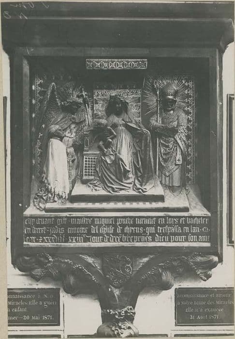 POP | Plateforme ouverte du patrimoinemonument funéraire : Vierge à l'Enfant assise le donateur et l'archange saint Michel un saint évêque