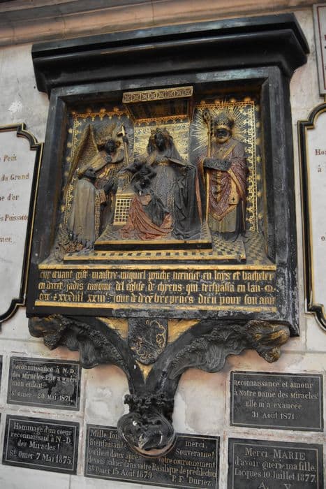 monument funéraire de Michel Ponche (bas-relief) : Vierge à l'Enfant le donateur accompagné de saint Michel
