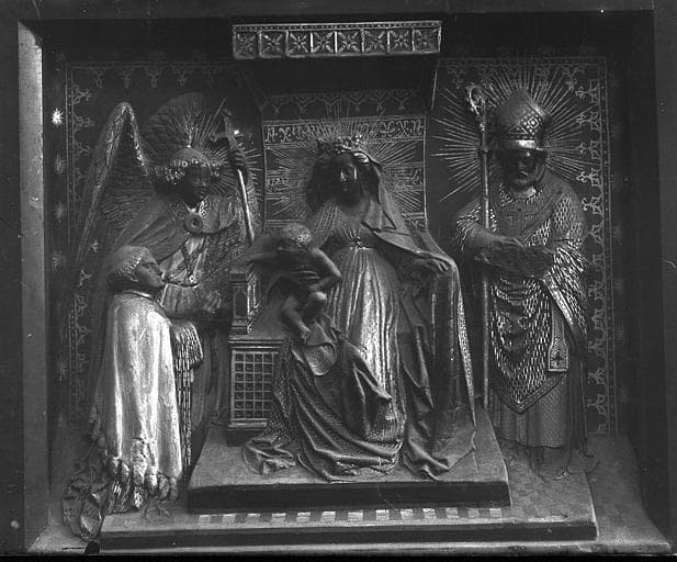 POP | Plateforme ouverte du patrimoinemonument funéraire de Michel Ponche (bas-relief) : Vierge à l'Enfant le donateur accompagné de saint Michel