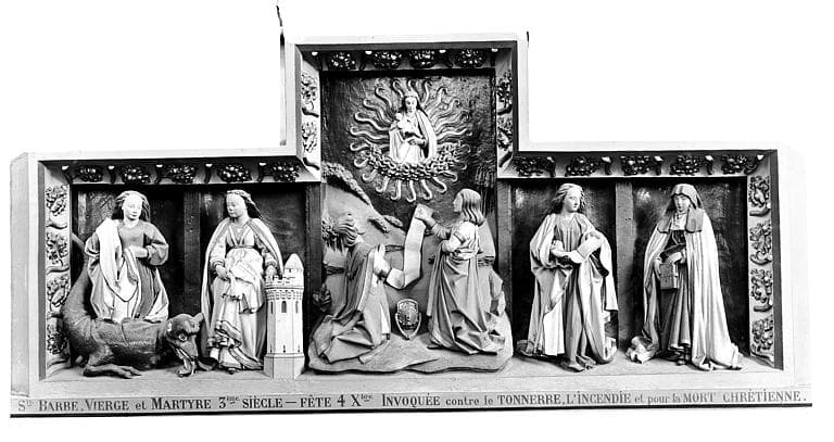 POP | Plateforme ouverte du patrimoineretable, bas-relief : Vierge sainte Marthe sainte Barbe sainte Marguerite saint Thérèse et deux donateurs (la)