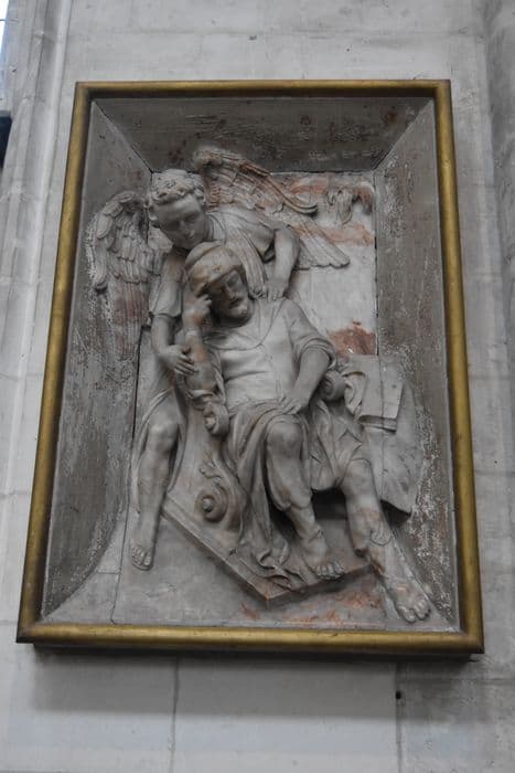 2 bas-reliefs dits Vierge au chat : Vierge à l'Enfant, saint Joseph endormi et un ange