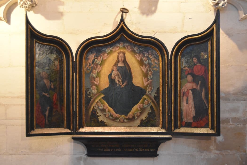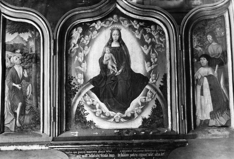 tableau (triptyque) : Vierge glorieuse (la), saint Jérome et le donateur, Jean Thoron accompagné de son patron, l'Annonciation