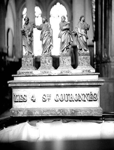 Quatre figurines : Saint Carpophore, saint Victor, saint Séverin, saint Sevère, dits Les quatre saints couronnés (œuvre volée)