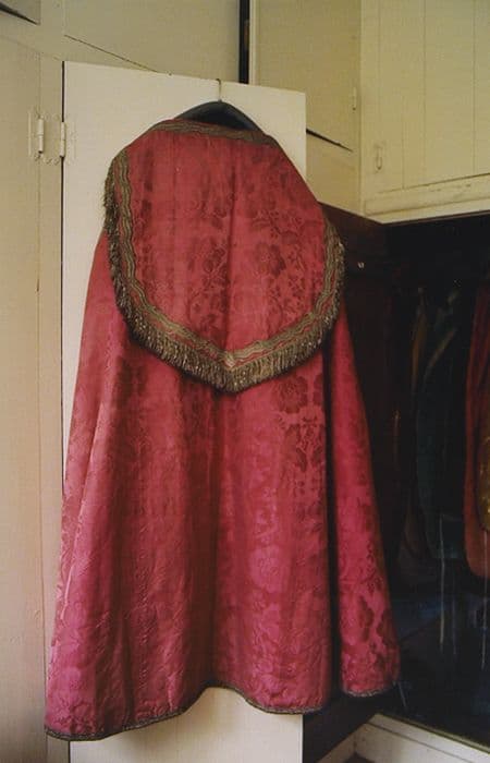 Ornements sacerdotaux : 1 chape 2 dalmatiques 1 étole et 2 manipules drap d'or. 1 chape et 1 étole damas violet brodé d'argent. 1 chape et 1 étole damas rouge brodé d'or.