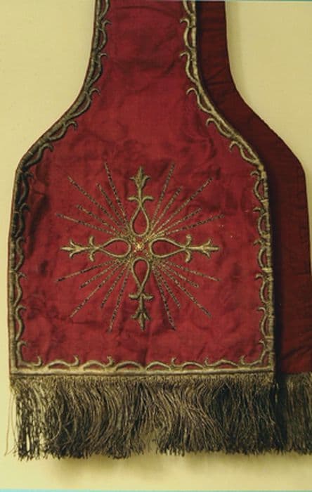 chape (3) ; dalmatique (2) ; étole de clerc (3) ; manipule (2)