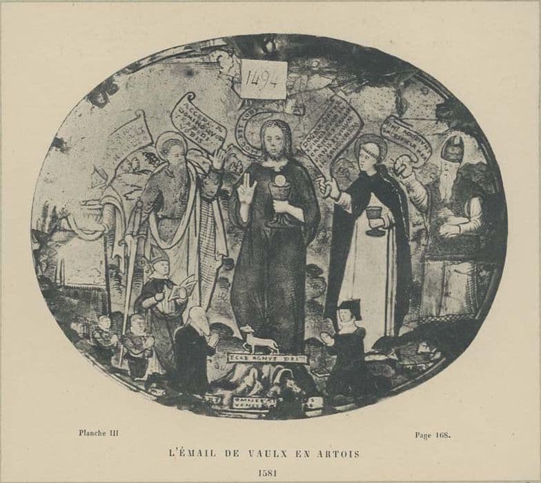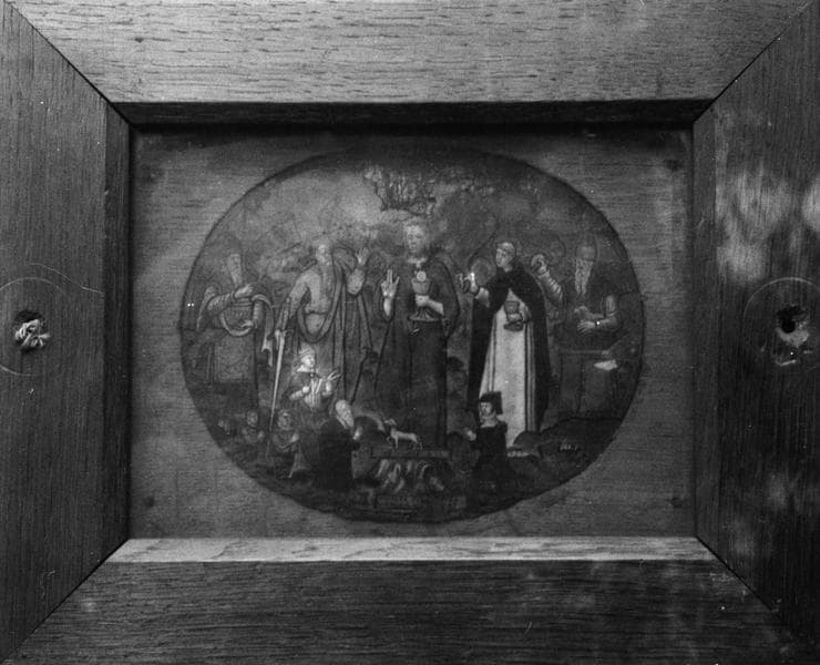 ex-voto : Christ entre saint Paul saint Thomas d'Aquin Melchisedech et Aaron et les donateurs