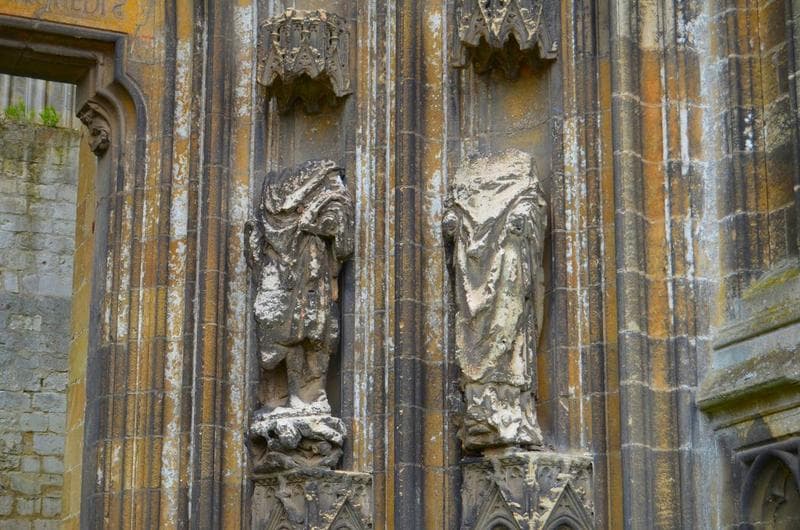 ensemble de cinq statues du portail occidental : Vierge à l'Enfant et saints personnages