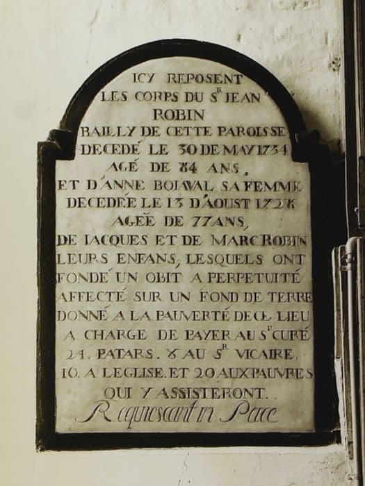 dalle funéraire (pierre tombale) de Jean Robin, Anne Boiaval et leurs enfants