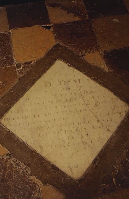 Nef, bas-côté sud, dans le dallage, devant l'autel.