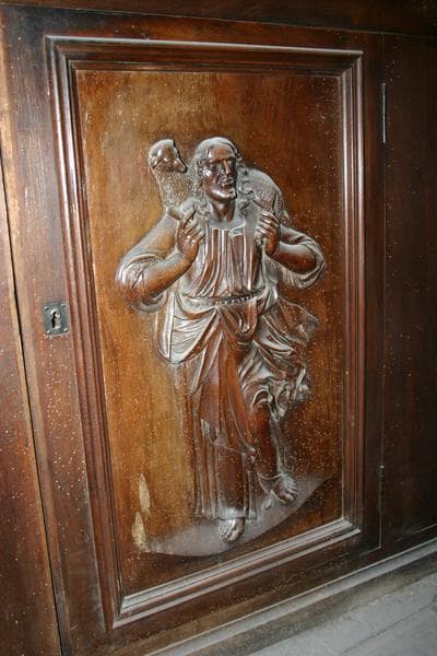Ornant des portes de placard dans la chapelle des fonts baptismaux.