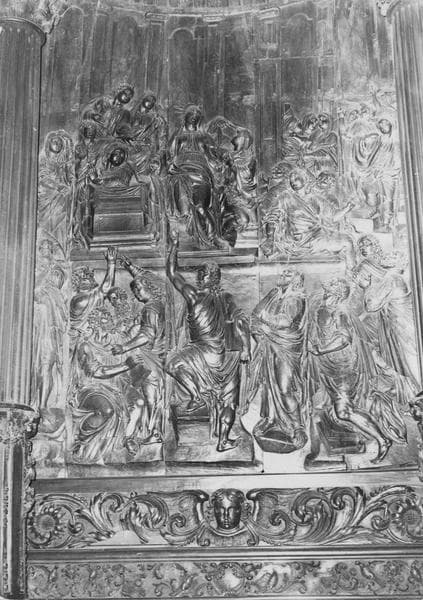 retable des fonts baptismaux, bas-relief : Pentecôte (la)