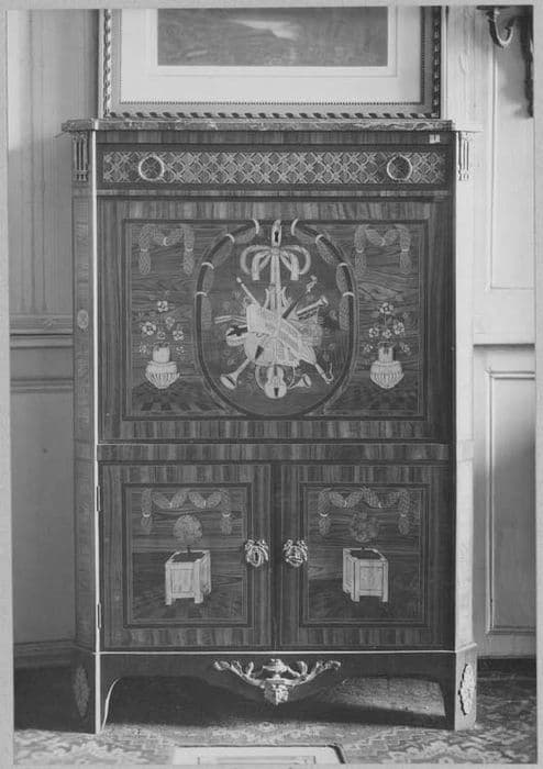bois : marqueterie ; bronze : ciselé, doré ; marbre