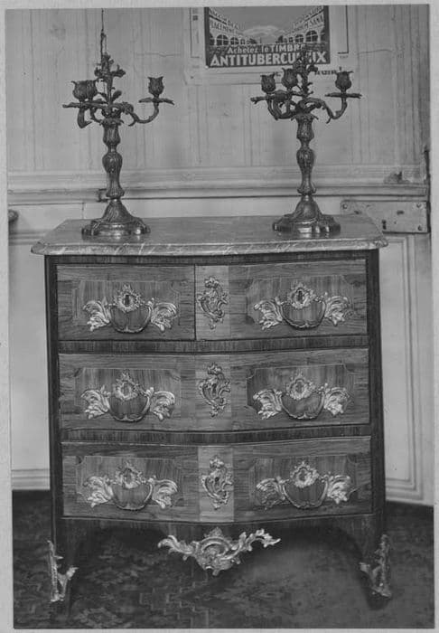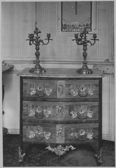 bois de rose ; bronze : ciselé, doré ; marbre