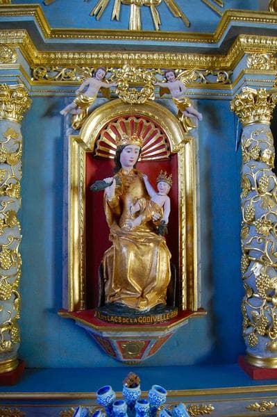 retable, statue : Vierge à l'Enfant dite Notre-Dame-des-lacs-de-la-Godivelle (chapelle du croisillon nord)