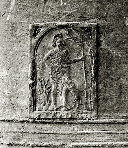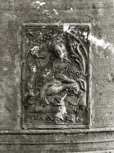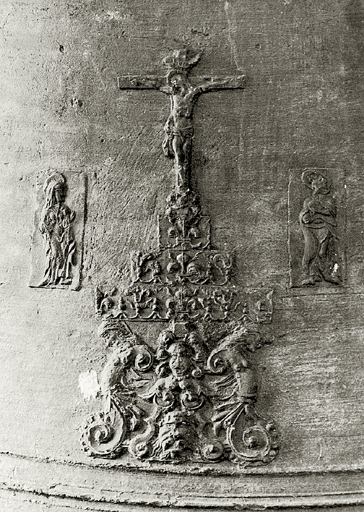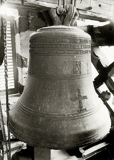 Inscription avec date : IHS/MARIA/JOSEPH/Ste/ANDREA/ORA/PRO/NOBIS/ME/FRANCOIS/GROS/CURE/ET/HONORABLE/HOME/ANTOINE/DESIRMOND/PAREIN/ET/DAMOISELLE/HELENE/DELACROIX/MAREINE/IEAN/LAYAT/ET/ANTOINE/GOVTAY/LVMINIERS/C/MARTIN/ET/A/RAMILHON/1704.