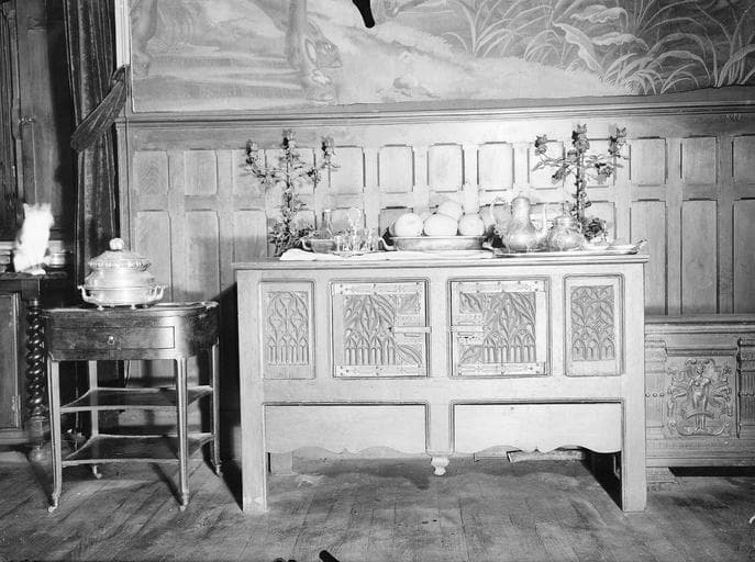 A décor flamboyant avec serrures et pentures remontés dans un bahut au 19e siècle.
