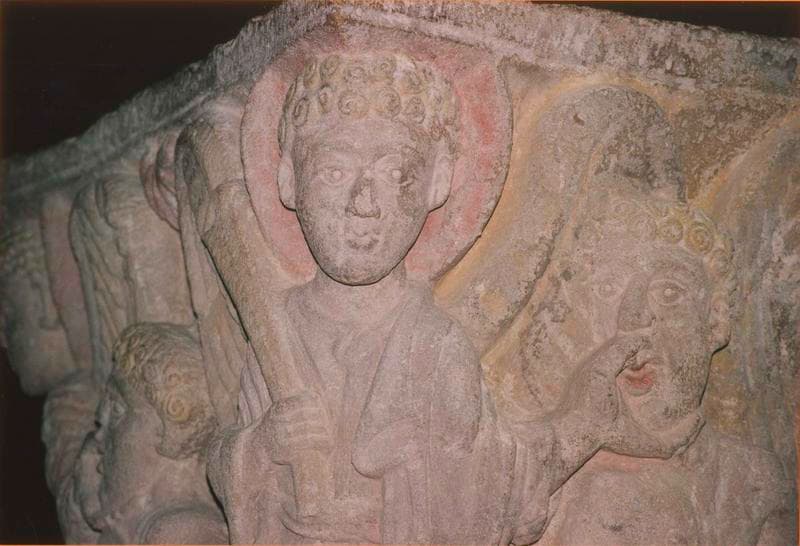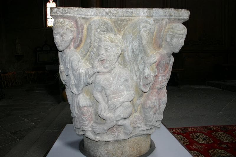 Pierre sculptée polychrome.