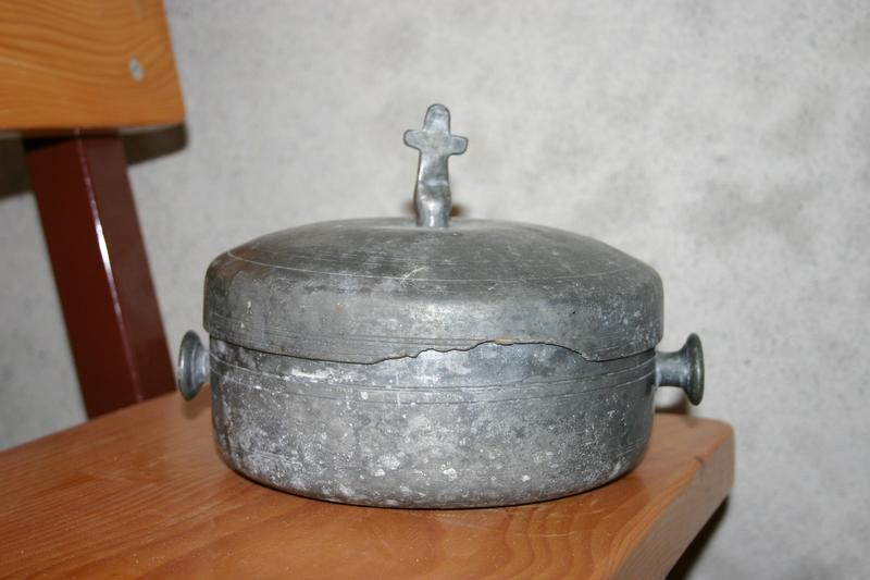 Vaisseau des saintes huiles en étain, visite pastorale 1807 (29/4).