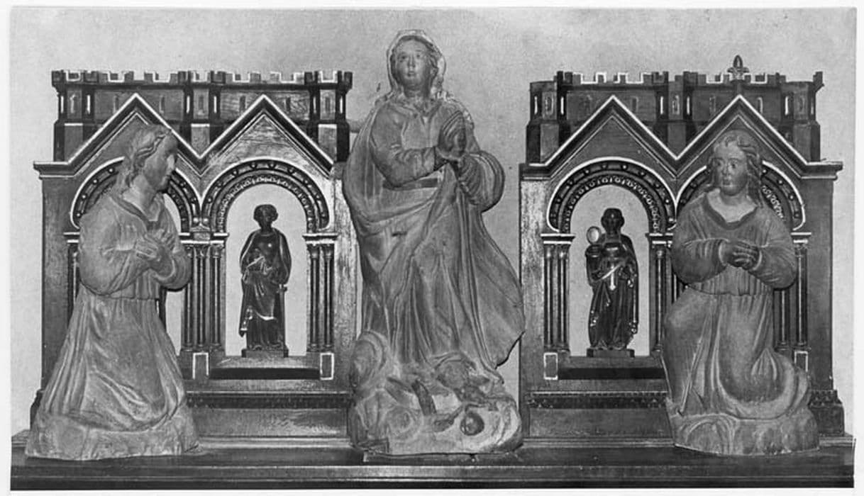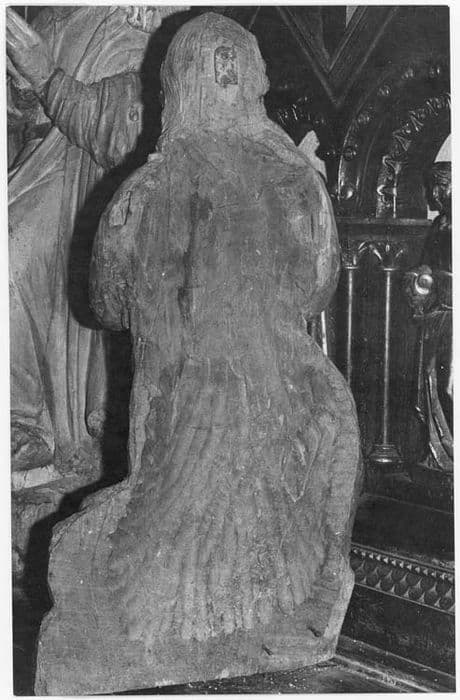 Statues largement évidées sur la face postérieure. Polychromie ancienne.