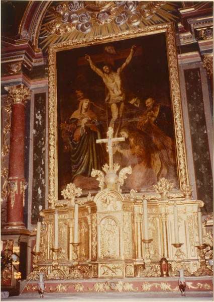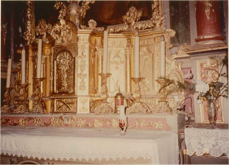 retable ; statue (2) ; tabernacle ; chandelier d'autel (6) ; tableau