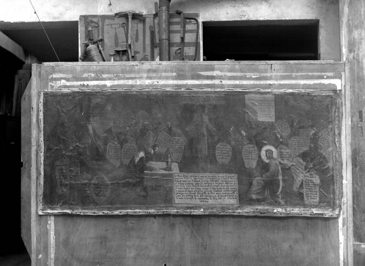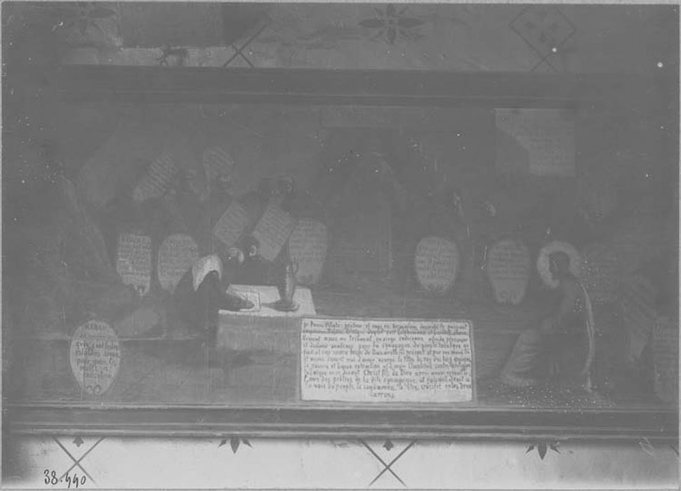 Restauration en 1879. Oeuvre comparable à Morlaas. Inspiration sans doute issue d'un évangile apocryphe.