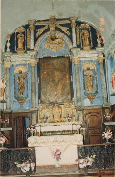 autel ; retable ; tabernacle ; tableau (2) ; statue (4) ; lambris de revêtement ; bras de lumière (2)