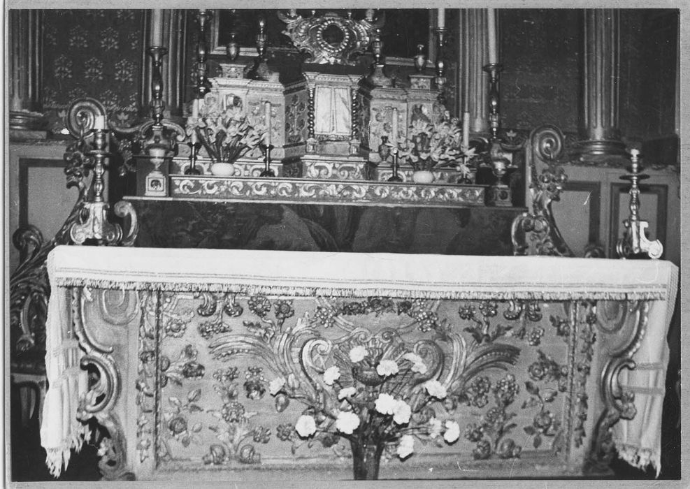 Devant de l'autel principal en bois sculpté en bas-relief et doré.