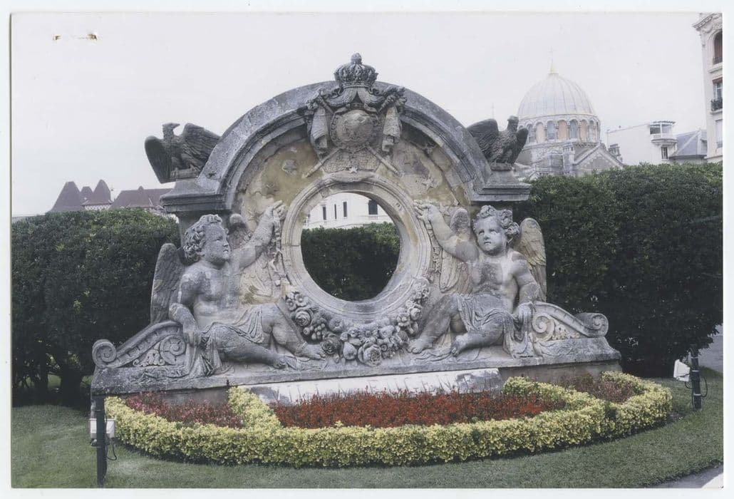 déposé sur la pelouse, à l'entrée des jardins