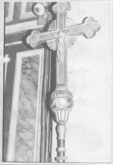 Croix processionnelle en bois sculpté et doré.