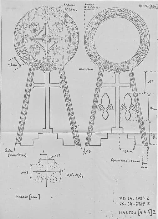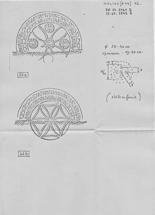 six croix : numéros 37, 38, 39, 40, 63, 53 sur le plan ; linteaux : n°64 sur le plan ; neuf stèles discoïdales : numéros 8, 9, 11, 20, 26, 30, 42, 43, 45 sur le plan ; cinq stèles tabulaires : numéros 19, 27, 29, 34, 47 sur le plan