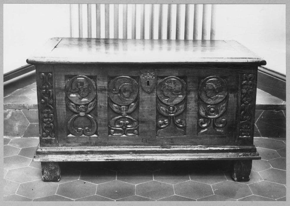 Coffre en bois, probablement de noyer.