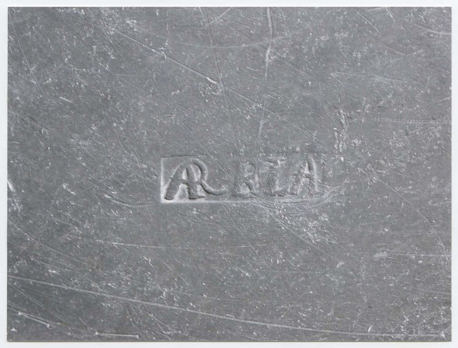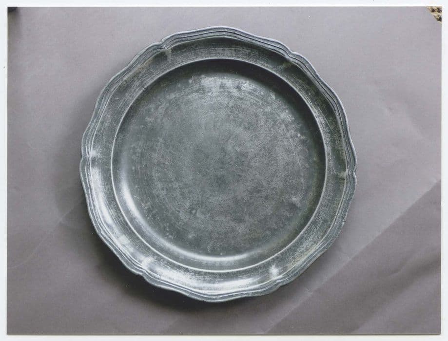 Un plat creux lobé à six accolades en étain fondu. Aile recourbée vers le haut.