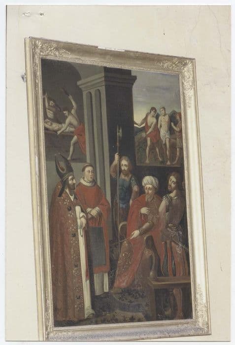 ensevelissement du corps de saint Vincent ; le corps de saint Vincent jeté à l'eau ; flagellation de saint Vincent ; saint Vincent étendu sur le gril ; saint Vincent étendu sur un lit de tessons ; saint Valère de Saragosse