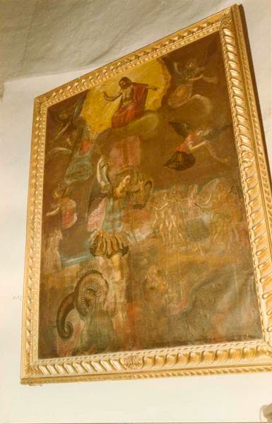 tableau : le Jugement dernier et saint Michel pesant les âmes