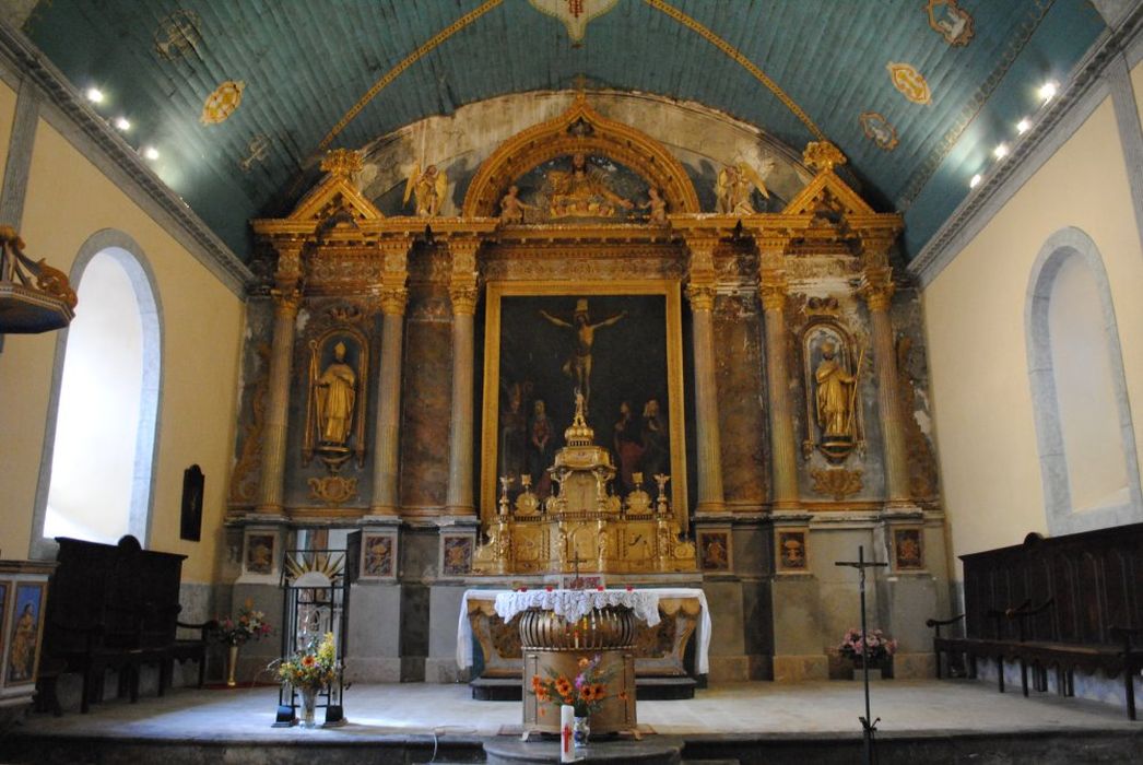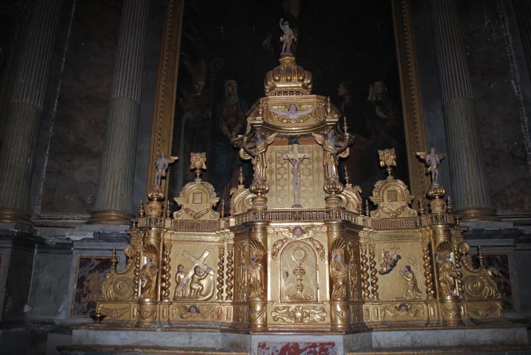 Maître-autel, tabernacle et retable avec sa toile : la Crucifixion.