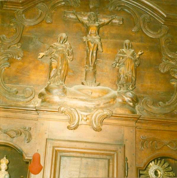 POP | Plateforme ouverte du patrimoinemeuble de sacristie, bas-relief : Christ en croix entre la Vierge et saint Jean