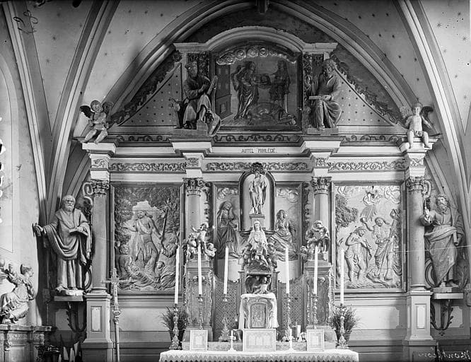 autel ; retable ; groupe sculpté ; tableau (2) ; statue ; lambris de revêtement