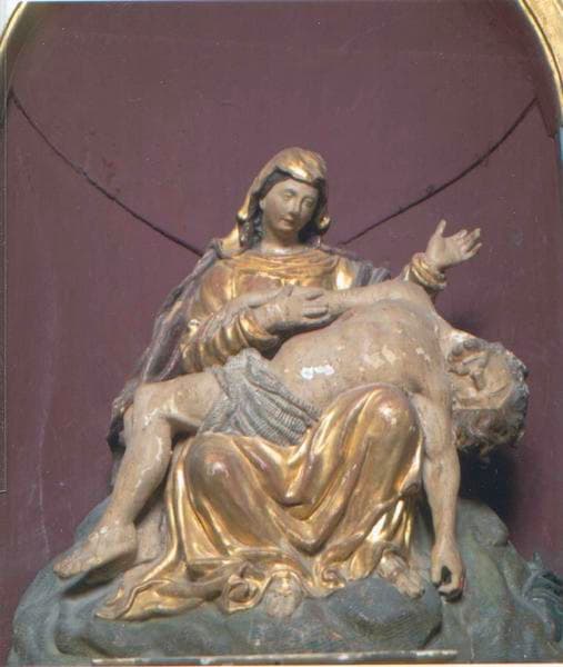 POP | Plateforme ouverte du patrimoineautel, retable, tabernacle, exposition, groupe sculpté et 2 statues : Vierge de Pitié entre saint Jacques-pélerin et saint Blaise (maitre-autel)