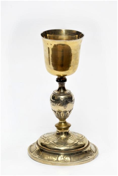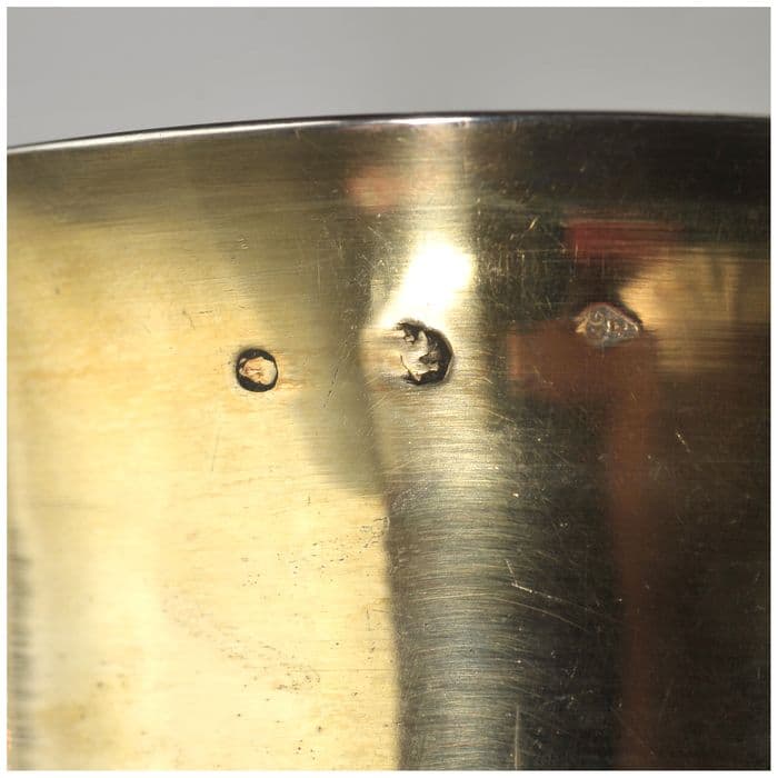 Calice en argent doré, noeud ovoïde, coupe lisse, pied circulaire légèrement bombé à décor ciselé.