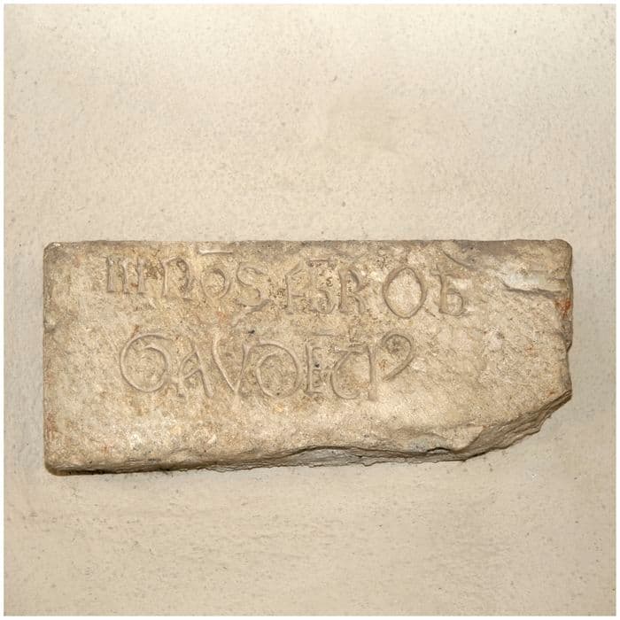 Stèle en pierre de forme rectangulaire avec une inscription en lettres gravées.